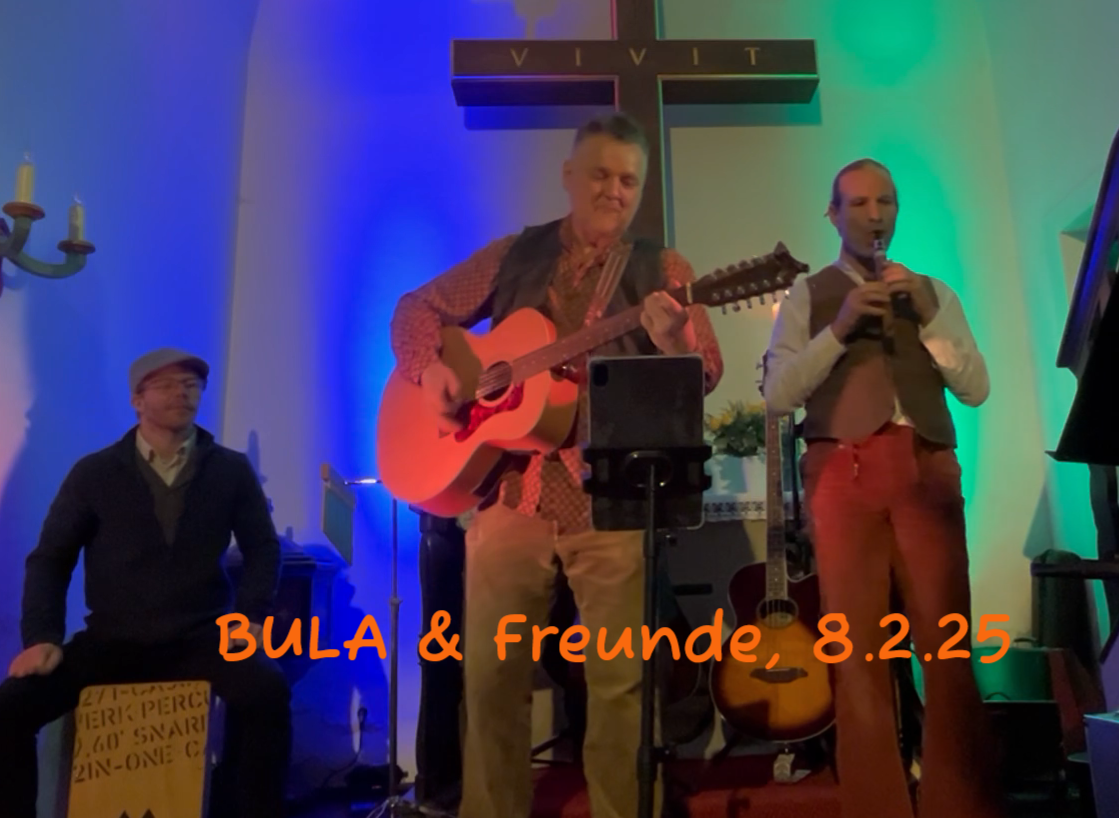 Bereits zum dritten Mal werde ich am 14. Februar in der hübschen kleinen Ev. Kapelle in Oberbärenburg zu Gast sein. Ich habe da bereits mit meinem Trio (BULA & Freunde) und mit Steffen König (BULA & KÖNIG) gespielt. Die Kappelle bietet eine tolle Akustik und ich freue mich auf ein schönes Konzert. Ich werde Eigene Stücke und auch Coverversionen spielen.